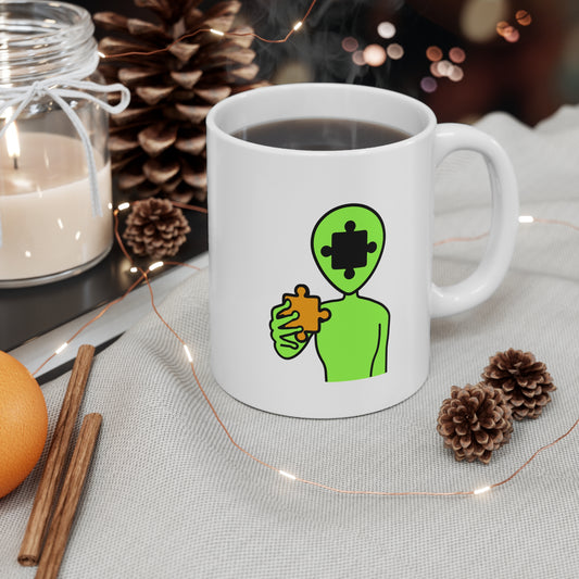 Alien Puzzle Piece Mug – UFO-Themed Ceramic Cup – 11oz