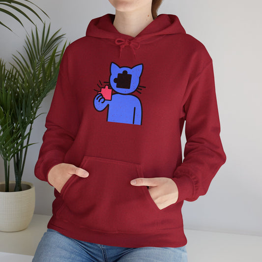 Cat Puzzle Piece Hoodie – Distressed Graphic Pullover – Cozy Unisex Hooded Sweatshirt for Puzzle Lovers
