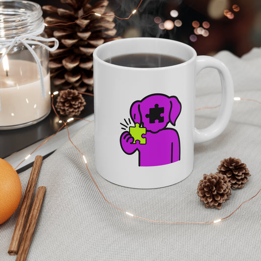 Dog Puzzle Piece Mug – Thoughtful Pup Graphic Ceramic Cup – 11oz