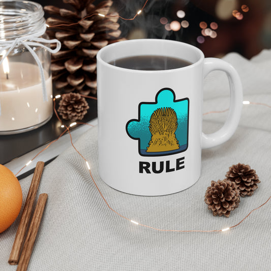 Throne Puzzle Piece Mug – ‘Rule’ Graphic Ceramic Cup – 11oz
