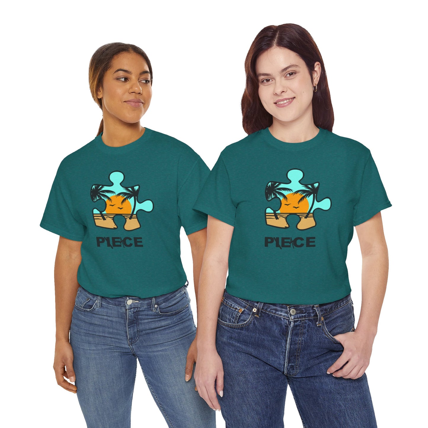 Peace Puzzle Piece T-Shirt – Clean Beach Graphic Tee – Unisex Heavy Cotton Shirt for Tranquil Vibes